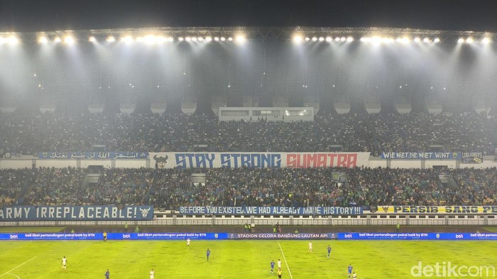 Saat laga dimulai, spanduk bertuliskan “Stay Strong Sumatra” dibentangkan Viking. Bahkan para pemain juga sempat mengheningkan cipta untuk para korban bencana Sumatera.