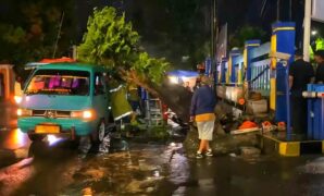 Pohon Tua di Depan RSUD Sekarwangi Tumbang Timpa Angkot