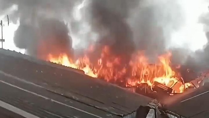 Api pertama kali terlihat berkobar dari lantai dua rumah milik Yusup Afandi (35). Banyaknya material yang mudah terbakar membuat api dengan cepat merembet ke bangunan sekitar.
