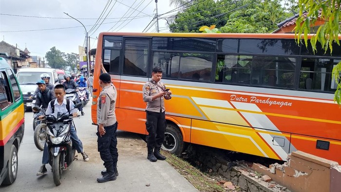 Sebuah bus menghantam bangunan masjid di tepi Jalan Raya Cihampelas, tepatnya di Kampung Rancakuda, RT 04/02, Desa Citapen, Kecamatan Cihampelas, Kabupaten Bandung Barat (KBB).