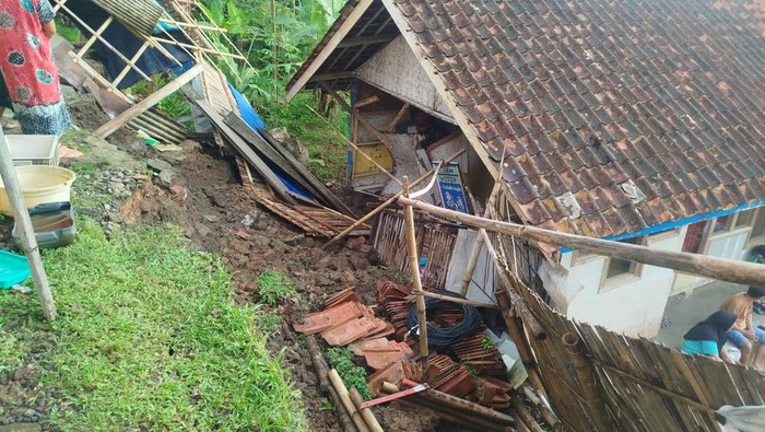 Akibat kejadian tersebut, satu rumah milik Bapak Empud yang dihuni dua kepala keluarga (empat jiwa) mengalami kerusakan cukup parah. Dinding rumah jebol dan beberapa bagian bangunan lainnya ikut rusak. Sementara itu, dua rumah lain milik Ibu Iip dan Ibu Anis berada dalam kondisi terancam akibat posisinya yang berada di tepi tebing.
