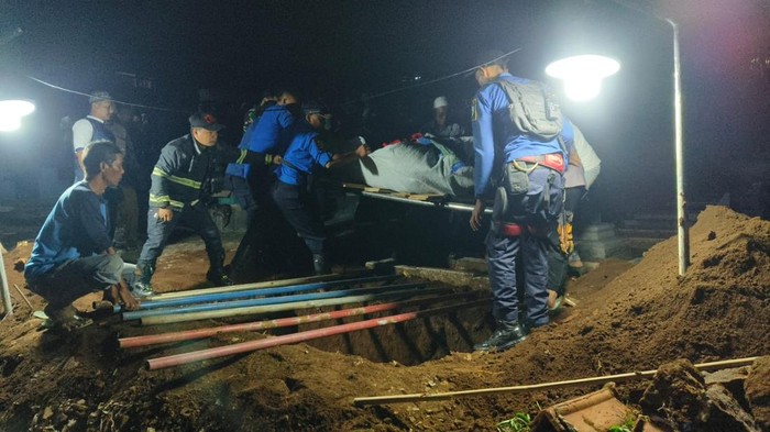 Petugas Pemadam Kebakaran (Damkar) Kabupaten Kuningan membantu memakamkan jenazah dengan berat 200 kilogram. Momen tersebut terjadi pada Senin (13/10/2025) di Desa Peusing, Kecamatan Jalaksana, Kabupaten Kuningan.