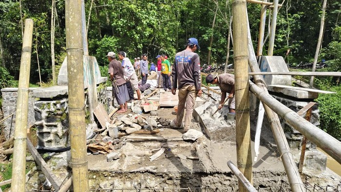 “Yang roboh kemaren itu adalah jembatan gantung sementara, yang dibuat warga masyarakat selama menunggu proses pembangunan jembatan selesai,” ujarnya.