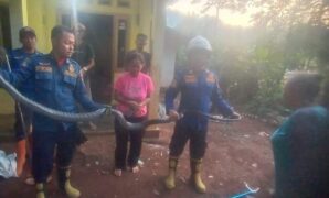 Petugas Damkar Sumedang Evakuasi King Kobra Nyasar ke Kamar Heni