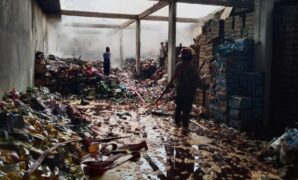 Kobaran Api Hanguskan Gudang Sembako Pasar Surade Sukabumi