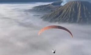 Aksi Nekat Wisatawan Korsel Terbangkan Paralayang di Gunung Bromo