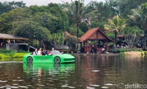 Ada Mobil Lambo Seberangi Danau Alami di Lembang