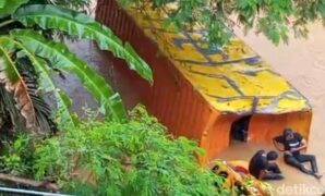 Mobil Boks Muatan Paket Terjun ke Sungai di Ciamis