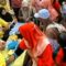Terlihat juga beberapa tukang tengah memisahkan besi-besi dari puing bangunan. Sebagian tukang lainnya sibuk menyiram air ke puing bangunan agar tidak berdebu.