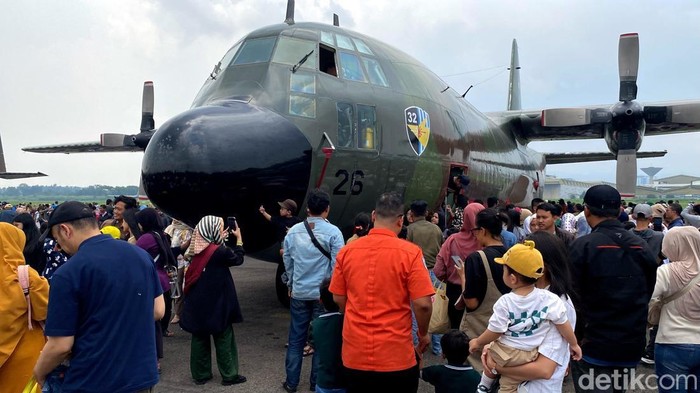 Bandung – Pada momen HUT TNI ke-80 tahun, ribuan warga berkesempatan melihat pesawat dari dekat di Lapangan Udara Husein Sastranegara, Kota Bandung, Minggu (5/10/2025).