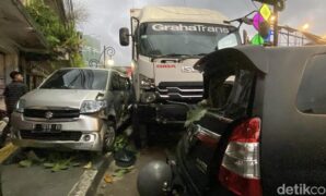 Truk Tronton Hantam 4 Mobil di Jalan Ahmad Yani Sukabumi
