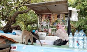 Berdamai dengan Monyet ala Pedagang di Pantai Pangandaran