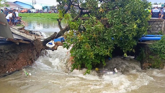Tanggul irigasi Kalimalang di Desa Margakaya, Kecamatan Telukjambe Barat, Kabupaten Karawang, jebol pada Jumat (16/1/2026) sekitar pukul 09.30 WIB.