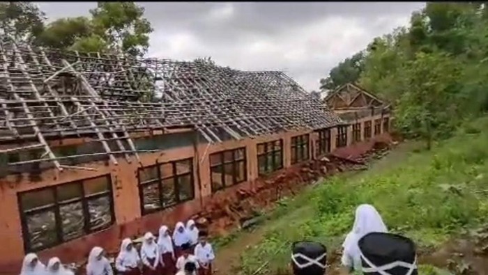 Kondisi bangunan SDN Curug Telu, Desa Bojongsari, Culemaga, Kabupaten Tasikmalaya begitu memprihatinkan. Para siswa bahkan mengadukan kondisi sekolahnya ke Gubernur Jabar Dedi Mulyadi via media sosial.